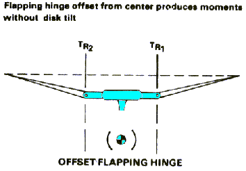 The offset hinge is located outboard from the hub and uses centrifugal force to produce substantial forces that act on the hub itself. One important advantage of offset hinges is the presence of control regardless of lift condition, since centrifugal force is independent of lift.