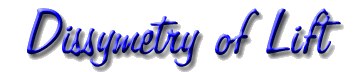 Dissymmetry of lift is the difference in lift that exists between the advancing half of the rotor disk and the retreating half. It is caused by the fact that in directional flight the aircraft relative wind is added to the rotational relative wind on the advancing blade, and subtracted on the retreating blade. The blade passing the tail and advancing around the right side of the helicopter has an increasing airspeed which reaches maximum at the 3 o'clock position. As the blade continues, the airspeed reduces to essentially rotational airspeed over the nose of the helicopter. Leaving the nose, the blade airspeed progressively decreases and reaches minimum airspeed at the 9 o'clock position. The blade airspeed then increases progressively and again reaches rotational airspeed as it passes over the tail.