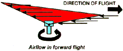 The total result of this action is a rotor tilt to the rear which is completely independant of any additional cyclic stick action and which causes an angular separation between the control axis and the thrust axis of the rotor.