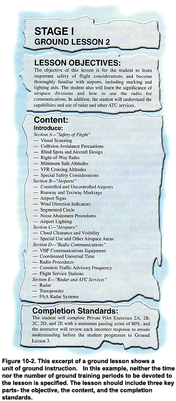 Individual flight lessons are much like ground lessons. Organization and format are similar. The lesson shown in figure 10-3 is an example showing the main elements.