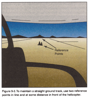 Before starting, select two references directly in front and in line with the helicopter. These reference points should be kept in line throughout the maneuver.