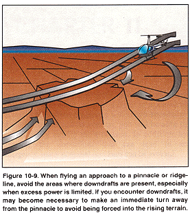 If you need to climb to a pinnacle or ridgeline, do it on the upwind side, when practable, to take advantage of any updrafts. The approach flight path should be parallel to the ridgeline and into the wind as much as possible.