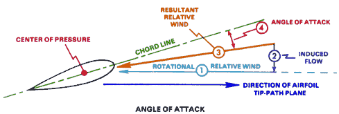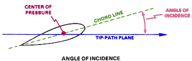 Angle of Incidence (or AOI) is the angle between the blade chord line and the plane of rotation of the rotor system.