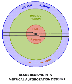 During vertical autorotative flight, the rotor disk is divided into three regions: