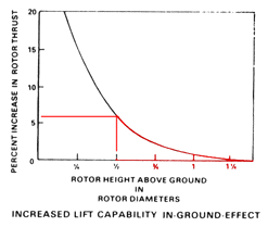 Rotor efficiency is increased by ground effect up to a height of about one rotor diameter for most helicopters.This graphic displays the percent increase in rotor thrust experienced at various rotor heights: