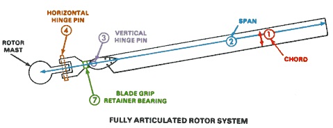 The Vertical Hinge Pin (3) (drag hinge) is the axis which permits fore and aft blade movement independent of the other blades in the system.