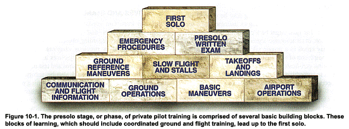 Use of the building block approach provides the student with a boost in self-confidence. This normally occurs each time a block is completed. Otherwise an overall goal, such as earning a private pilot certificate, may seem unobtainable. If the larger blocks are broken down into smaller blocks of instruction, each on its own is more manageable.