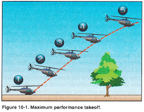 Before attempting a maximum performance takeoff, bring the helicopter to ahover, and determine the excess power available by noting the difference between the power available and that required to hover. For Piston powered helicopters, a Magneto check prior to this maneuver is advised as well prior to the hover check. You should also perform a balance and flight control check and note the position of the cyclic. Then position the helicopter into the wind and return the helicopter to the surface. normally, this maneuver is initiated from the surface. After checking the area for obstacles and other aircraft, select reference points along the takeoff path to maintain ground track. You should also consider alternate routes in case you are not able to complete the maneuver.