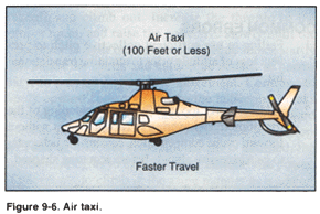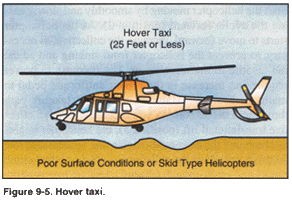 | A "Hover Taxi" is used when operating below 25 feet AGL. Since a hover taxi is just like forward, sideward, or rearward hovering flight, the technique to perform it will not be presented here. |