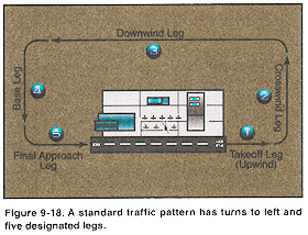 A normal traffic pattern is rectangular, has five named legs, and a designated altitude, usually 660 to 1,000 feet AGL. A pattern in which all turns to the left is called a standard pattern. Please refer to the figure.